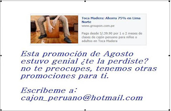 ResponderEliminarHola Erick, no necesitas traer cajon a la clase,pero si recomiendo tener uno en casa para que practiquen. Escribeme a cajon_peruano@hotmail.com ,para asi enviarte mas detalles de las clases y los horarios que me estan quedando.